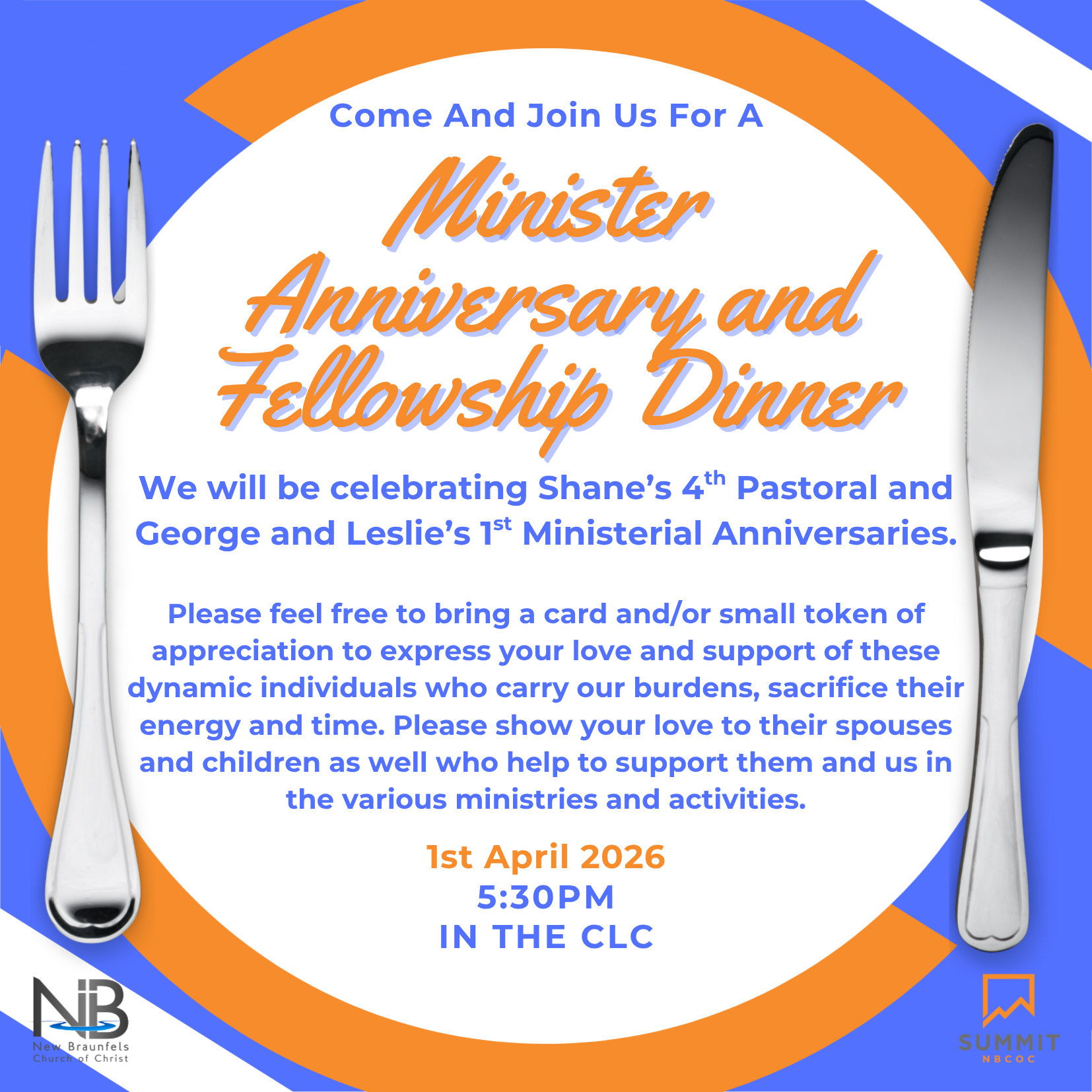 March 30th marks one year of the installation of these two awesome individuals who have poured their all into the children of our congregation. Cheers to many more years ahead. Our love to you both!